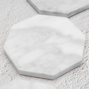 Engraved White Octagonal Marble Coaster Wedding Place Card