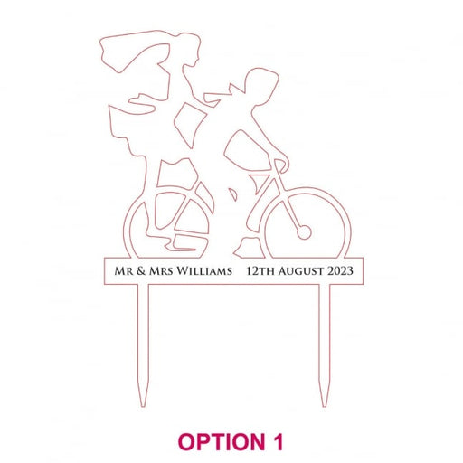 Ready to ride into a happy future together? This personalised topper will add the perfect finishing touch to your wedding or engagement cake. Feat...