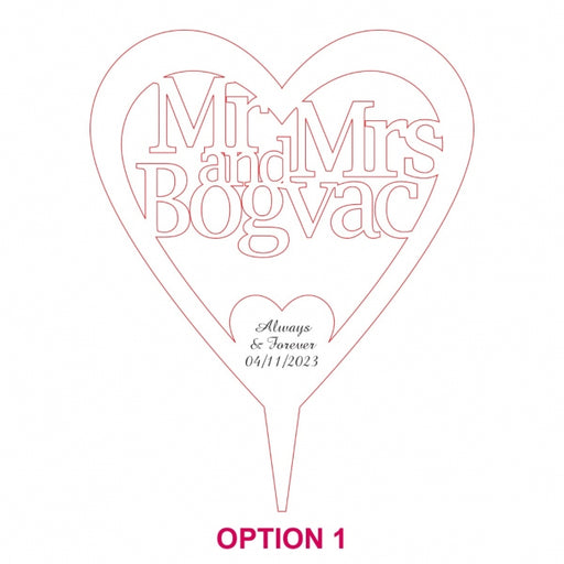 View full detailsPersonalised Mr & Mrs Heart Acrylic Cake Topper