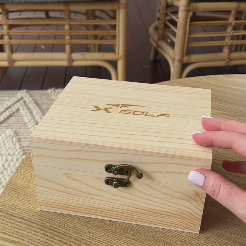 Everything comes neatly presented in a sturdy wooden box with a secure latch. Plus, you can engrave your business logo on both the lid and the glass for a unique, personalised touch.